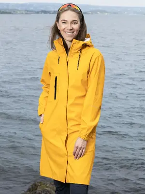 Du kjenner kanskje til Stockholm regnjakke fra Stutterheim. Dette er en variant som er noe lengre, altså en regnkåpe, men som ellers er lik.